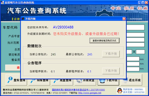 專業(yè),實(shí)用,權(quán)威!金思維《汽車公告查詢系統(tǒng)》是由隨州市金思維網(wǎng)絡(luò)科技有限公司于2005年10月獨(dú)立開發(fā)完成的(軟件著作權(quán)登記證書編號:2007SR16880),用于查詢?nèi)珖鞯剀囕v生產(chǎn)企業(yè)及車輛技術(shù)參數(shù)。近幾年,根據(jù)用戶的意見和建議,我們不斷對軟件進(jìn)行改進(jìn)和升級,使其功能更加完善、查詢更加方便: